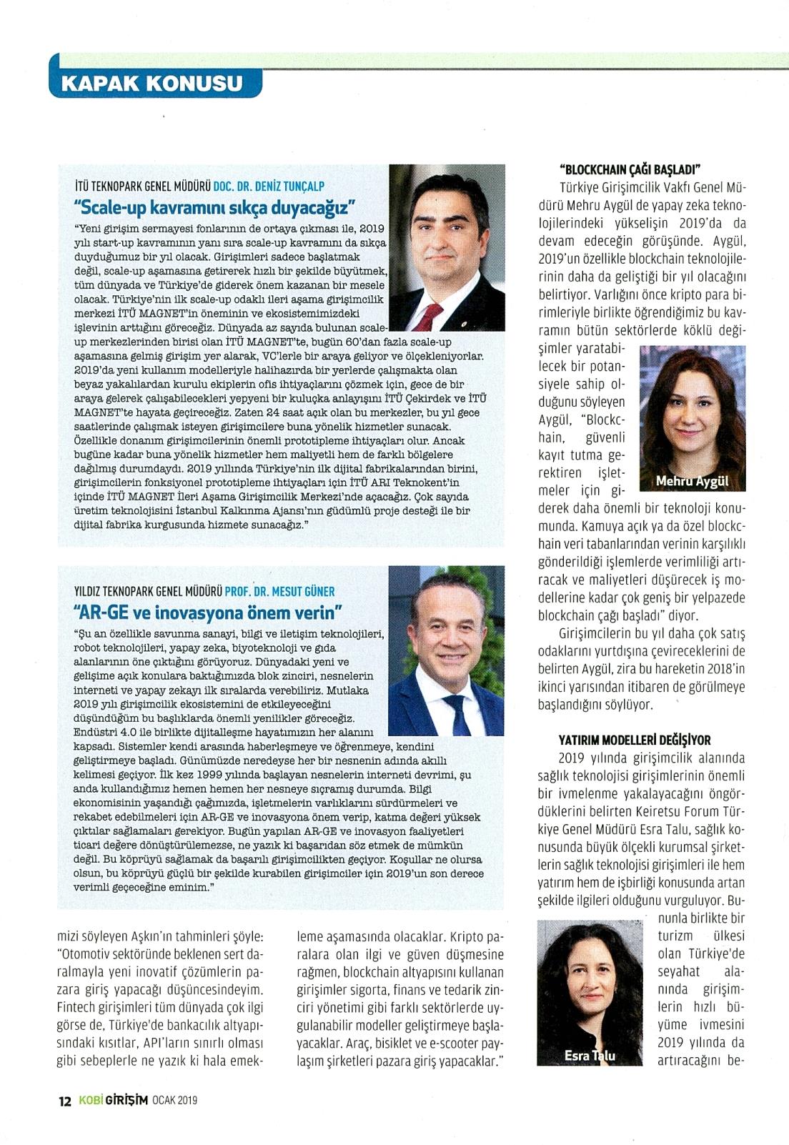 ‘’Türkiye’nin ilk scale-up odaklı ileri aşama girişimcilik merkezi İTÜ MAGNET’in öneminin ve ekosistemimizdeki işlevinin arttığını göreceğiz.’’ EKONOMİST KOBİ GİRİŞİM OCAK 2019